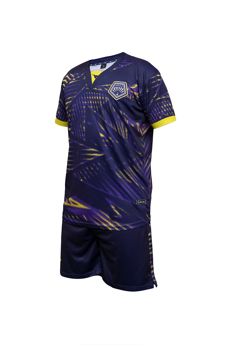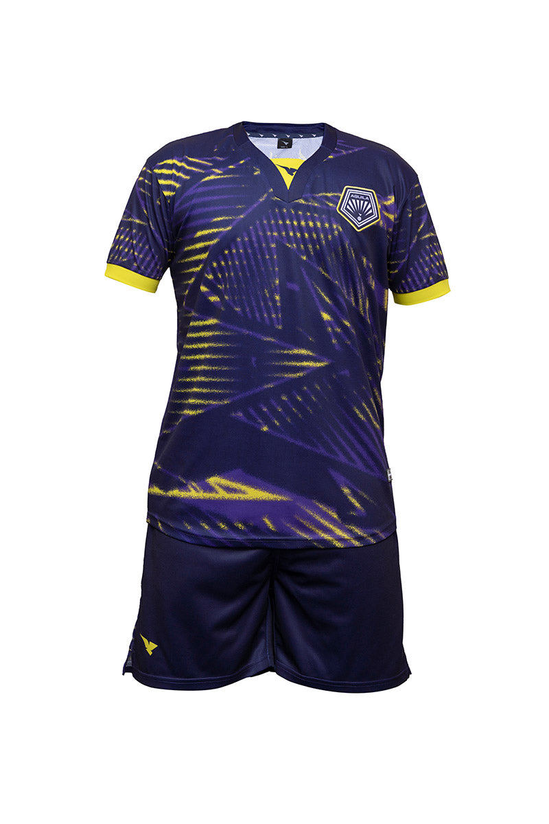 A Kit designed for soccer, made from breathable materials to keep players cool and comfortable. It's part of a uniform for soccer games.